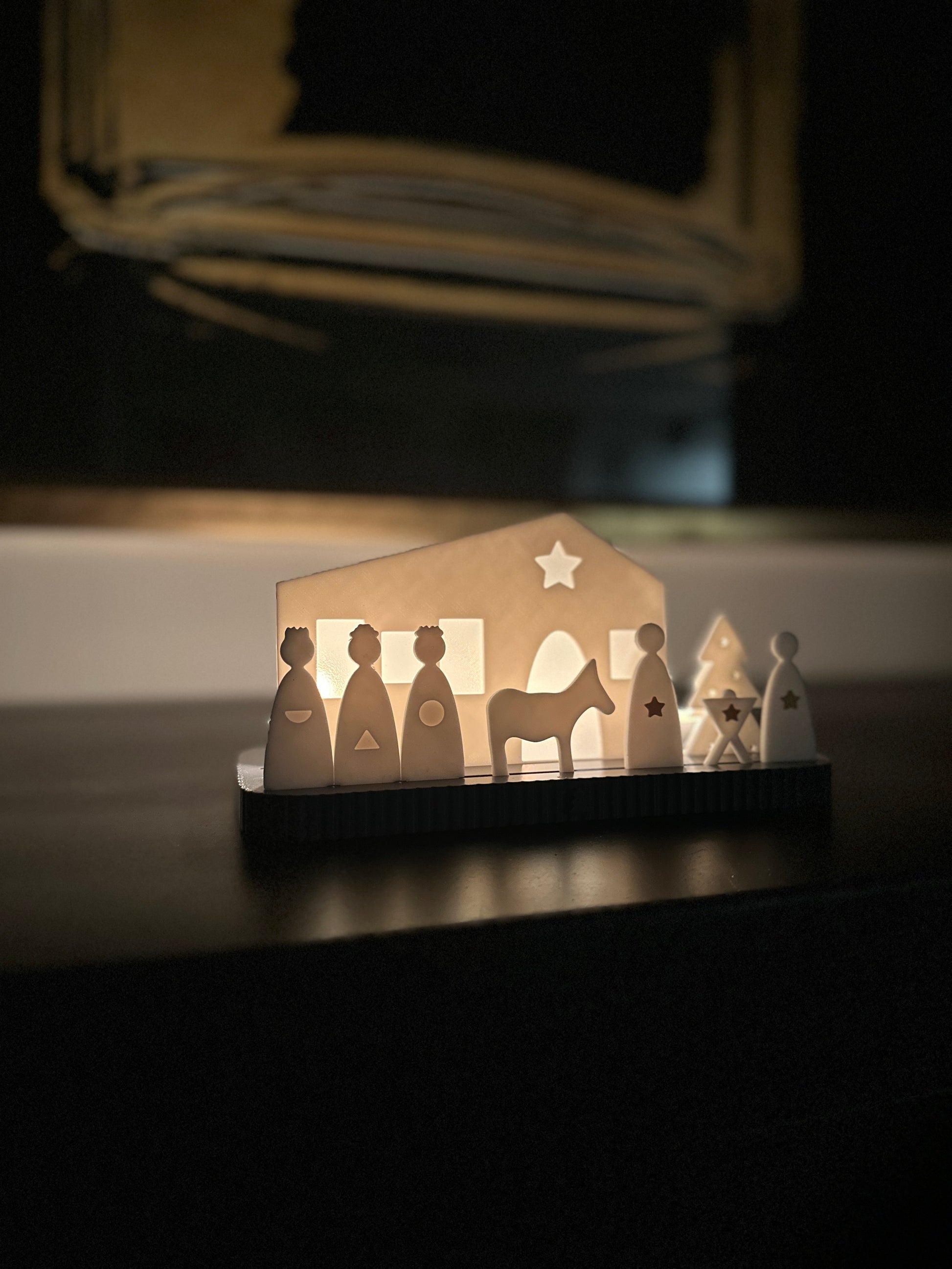 Die Krippe besteht aus mehreren einzeln 3D-gedruckten Figuren, die du nach Belieben aufstellen oder auch weglassen kannst. So entsteht jedes Mal eine neue, ganz persönliche Darstellung der Weihnachtsgeschichte – vom klassischen Ensemble bis zur modernen, reduzierten Szene.